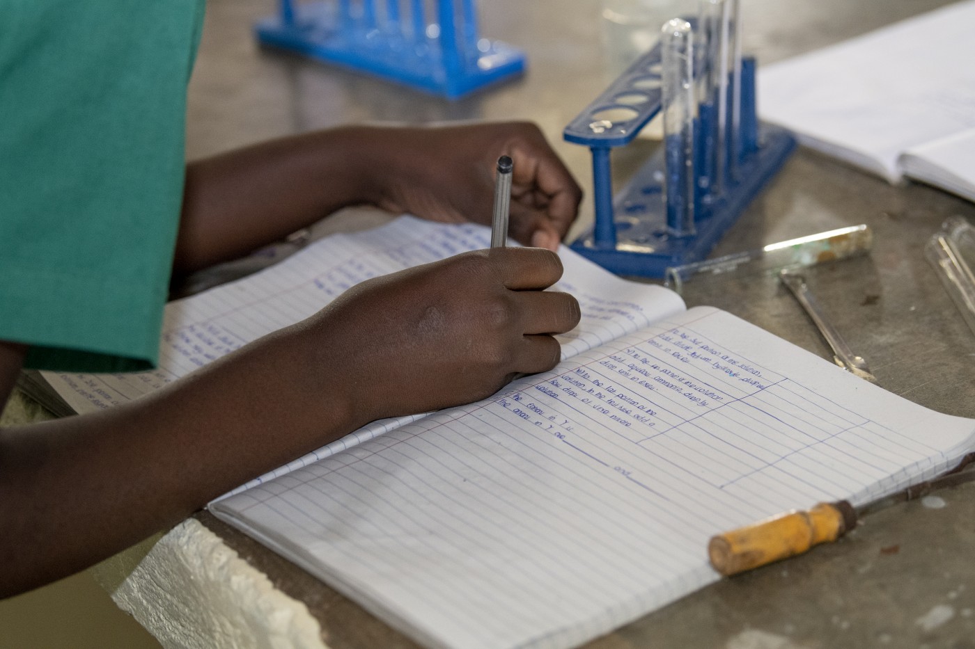 Asinduru seems shy at first. Her words begin slowly. She sits with her elbows resting on the wood school desk, her hands stacked one on top of the other. Her head is slightly tilted. Like a train heading downhill, she quickly picks up speed. Her words start coming fast. For a few moments, she seems a bit frantic, as though she may run out of time or forget nuggets and details of her story she needs to include. As she continues to speak, her body becomes more animated. Like most of the girls at school, her hair is cut short and close to her head for easy maintenance. It is when she leans in and smiles broadly, you get a glimpse of her beauty and steely determination.