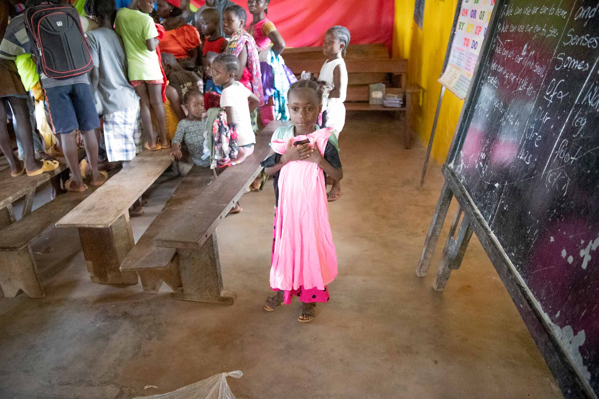 Emma nearly died from chronic malaria. She says she felt very sick for a long time, but her tummy is better now. Program administrators realized Emma was ill and not recovering and took her multiple times to a clinic in Buchanan for treatment. Malaria is common in Liberia. The disease is caused by a parasite that spreads to humans through the bites of infected mosquitos. Once infected with malaria, the high fevers, shaking, chills and sickness settle in. Emma is one of nearly 300 million people who are infected with malaria each year. Annually, an estimated 400,000 people worldwide die from this preventable and treatable disease. In Buchanan, most people don’t sleep under mosquito netting at night and cannot afford to seek medical care when they become sick. Thankfully, because Emma is enrolled in the feeding program in Buchanan, she received lifesaving treatment.