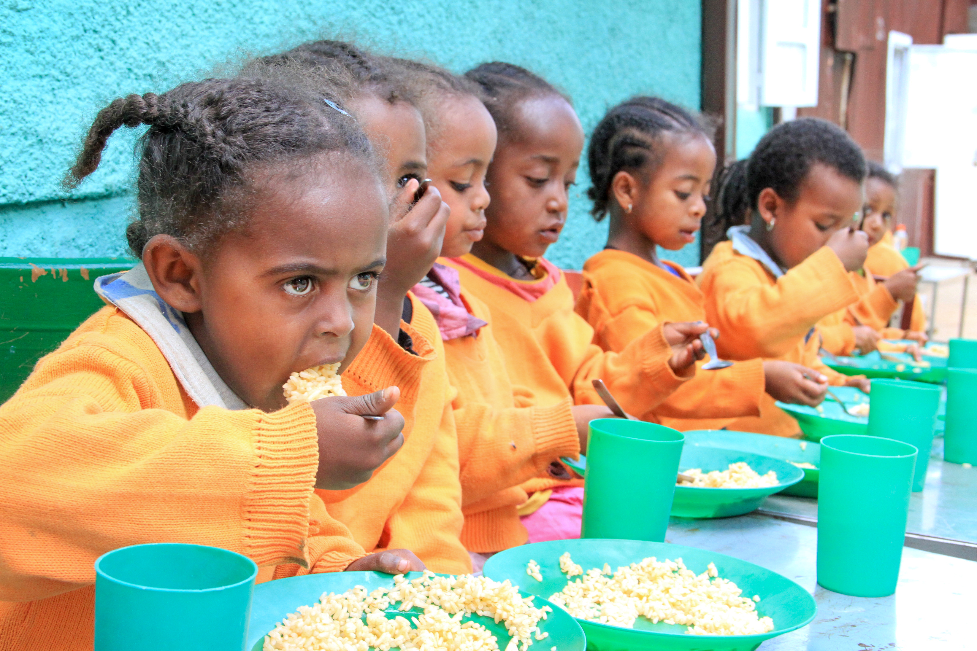 A critical component of the World Children's Fund fulfillment model is providing nutritional meals to orphans and vulnerable children in educational settings. Receiving food at school eradicates hunger and malnutrition and promotes school enrollment and retention.